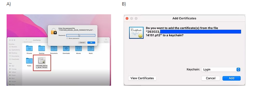 Nesta segunda tela se for o caso deverá no menu “ Keychain” selecionar “Login” e clicar em Add