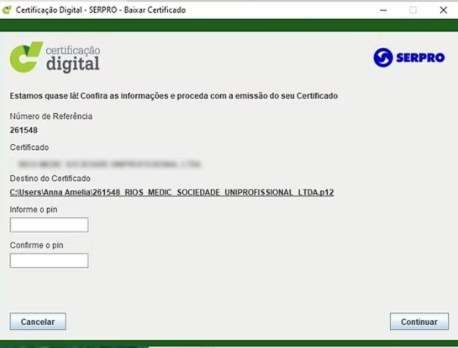 Tela final informa que o certificado foi emitido